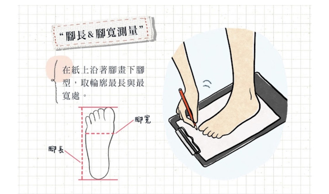 〔※腳長測量方式:從腳後跟到最長腳趾的總長公分數,可用量腳器測量或讓小朋友站在紙上,腳後跟與最長腳趾各畫一線,用尺量兩線之間總長。〕