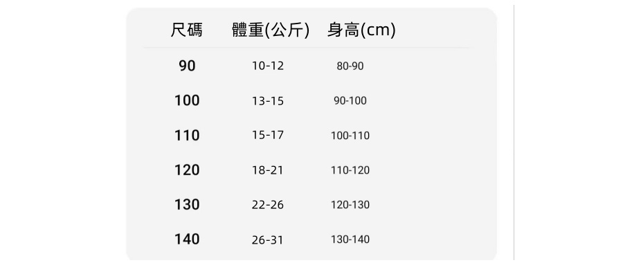 💖尺寸:90-140cm